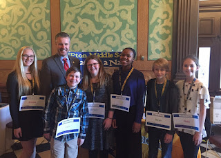 Winter Bell, Jack Francis, Morgan Hanks, Ruby Rappette, Emma Stout, Micah Wagoner, and Dana represented Upton Middle School very well yesterday in Lansing! It was really fun to watch how our kids interacted with all the visitors and politicians. We represented Southwest Michigan with extreme class!
